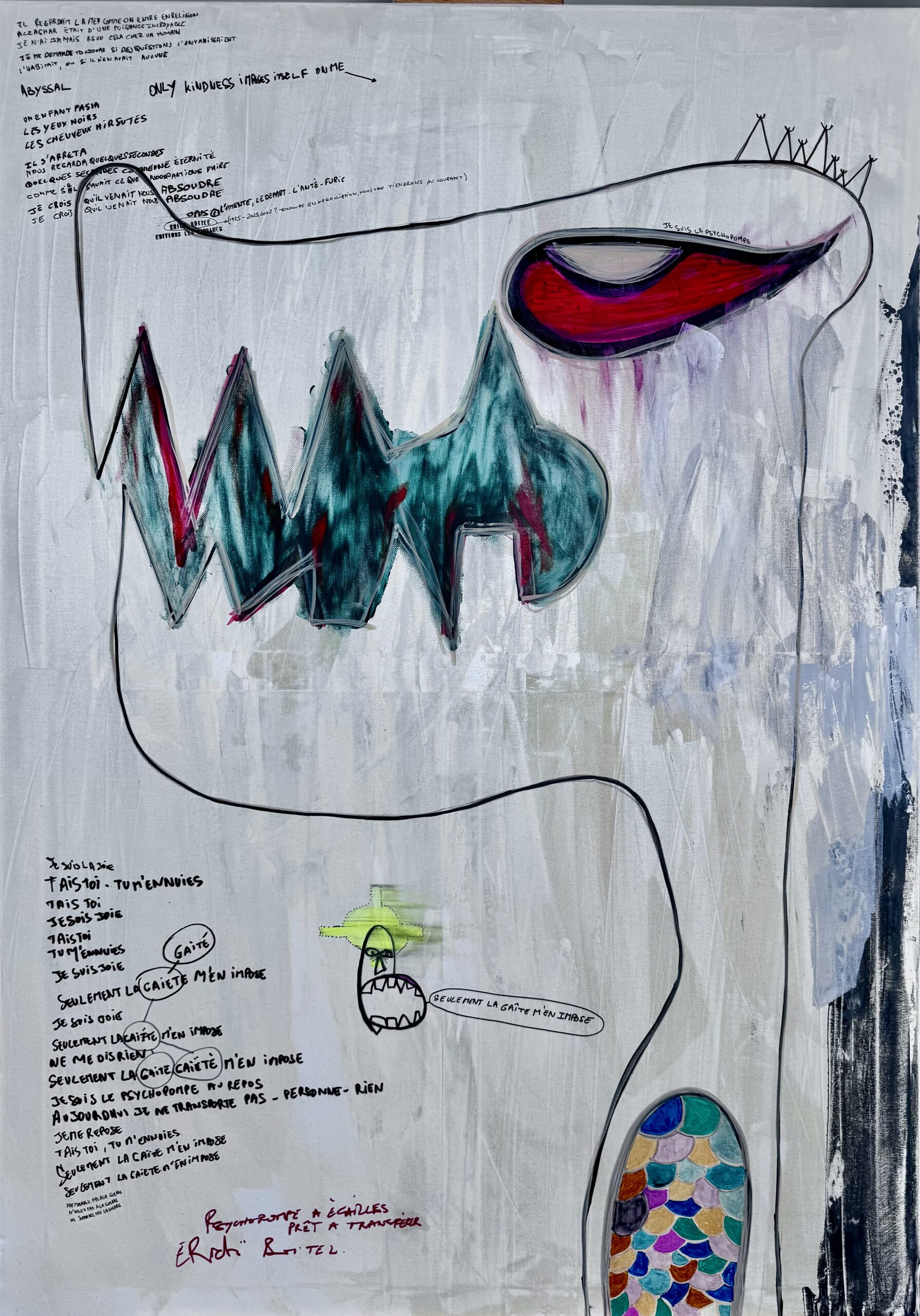 These words, hammered with fervor, sculpt a path of redemption towards the good, the beautiful, the desire. His raw art becomes a tangible mantra, a vibrant act of faith that conditions the emergence of a positive outcome.