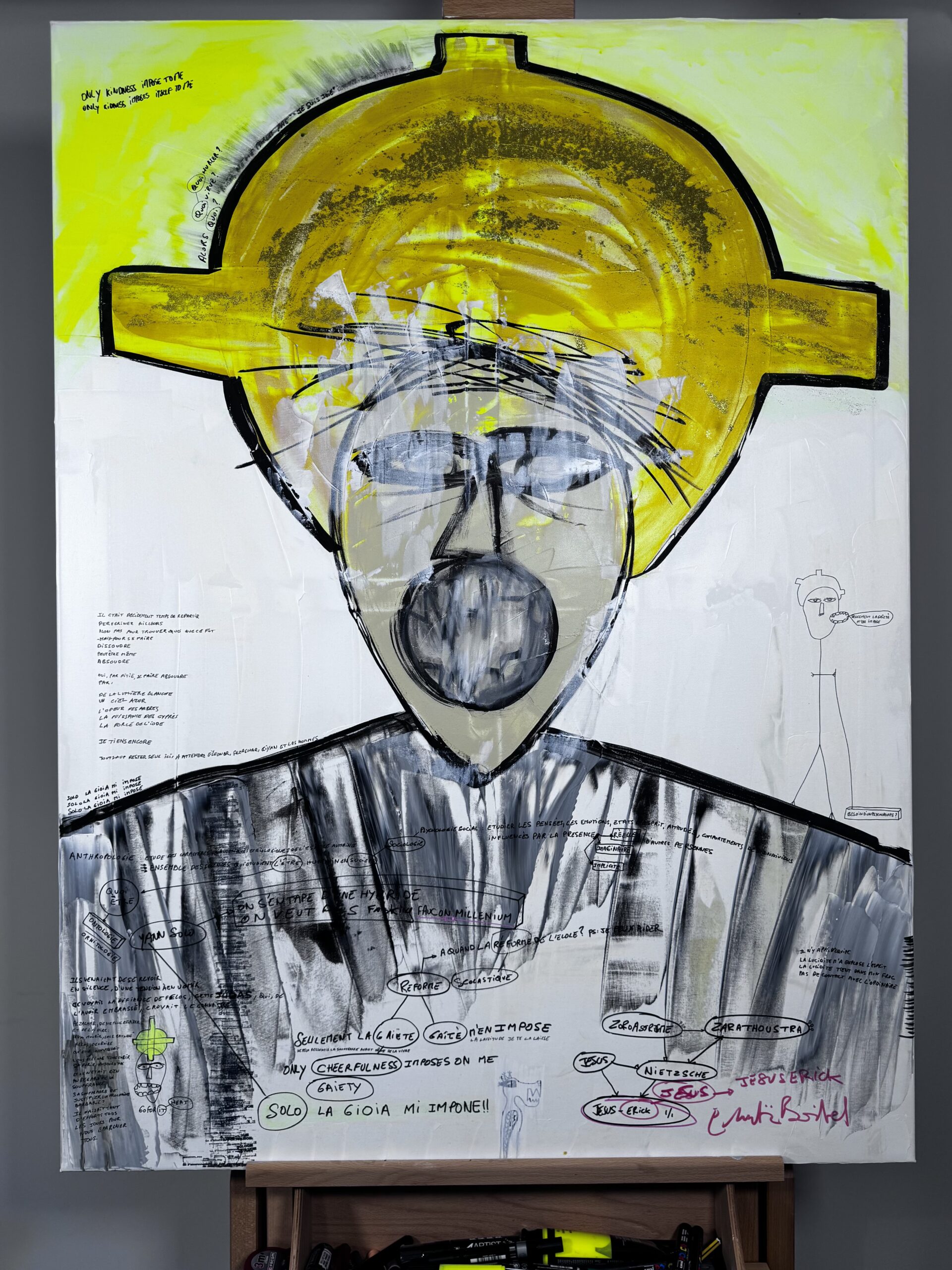Ces mots, martelés avec ferveur, sculptent un chemin de rédemption vers le bien, le beau, le désir. Son art, brut devient un mantra tangible, un acte de foi vibrant qui conditionne l’émergence d’une issue positive.