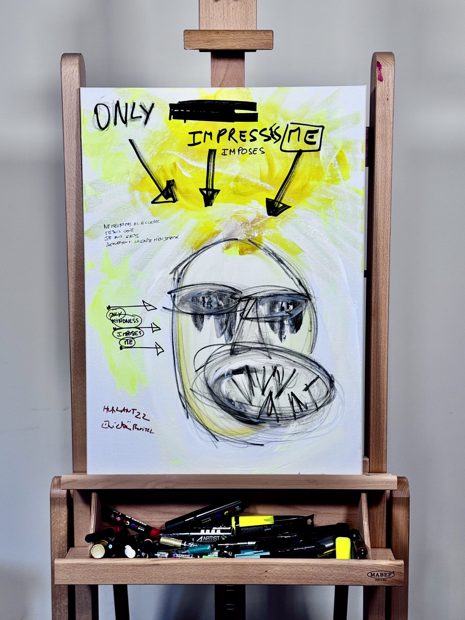 Ces mots, martelés avec ferveur, sculptent un chemin de rédemption vers le bien, le beau, le désir. Son art brut devient un mantra tangible, un acte de foi vibrant qui conditionne l’émergence d’une issue positive.